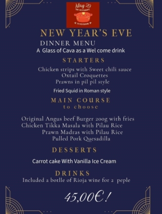 Here is a list of restaurants and cafés in Benalmadena that are preparing events on New Year’s Eve. Booking ahead is a must; check below their locations, menus and – most importantly – phone numbers, so you can check all other details directly with the venues. 😉